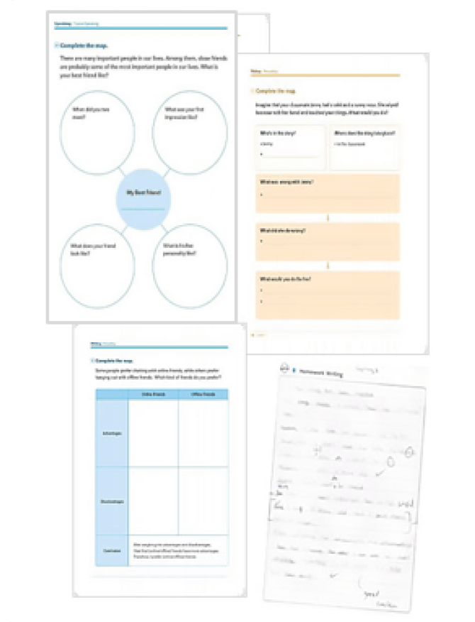Aprilでは各単元を7回の授業に分けて、約1ヶ月をかけて学びます。1回目から6回目の授業では毎回一つのパッセージを題材として、Reading→Speaking→Writingの順番で授業を進めます。5回目からは授業の一部を使ってCTP(Creative Thinking Project)という単元のまとめの役割を担う発表の準備を進め、7回目の授業では発表と撮影を行います。