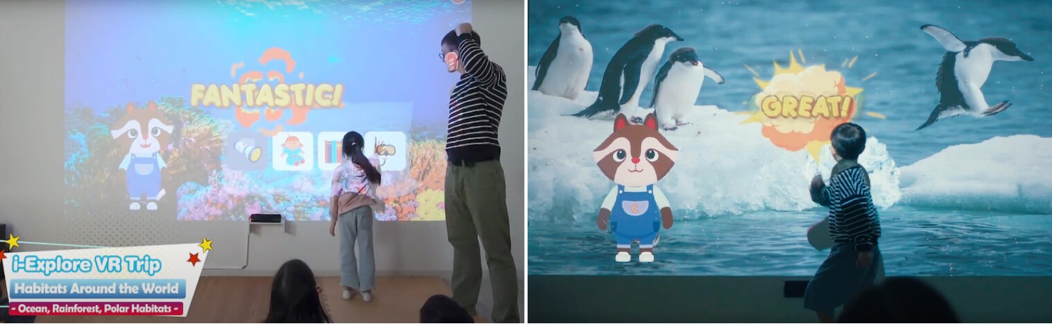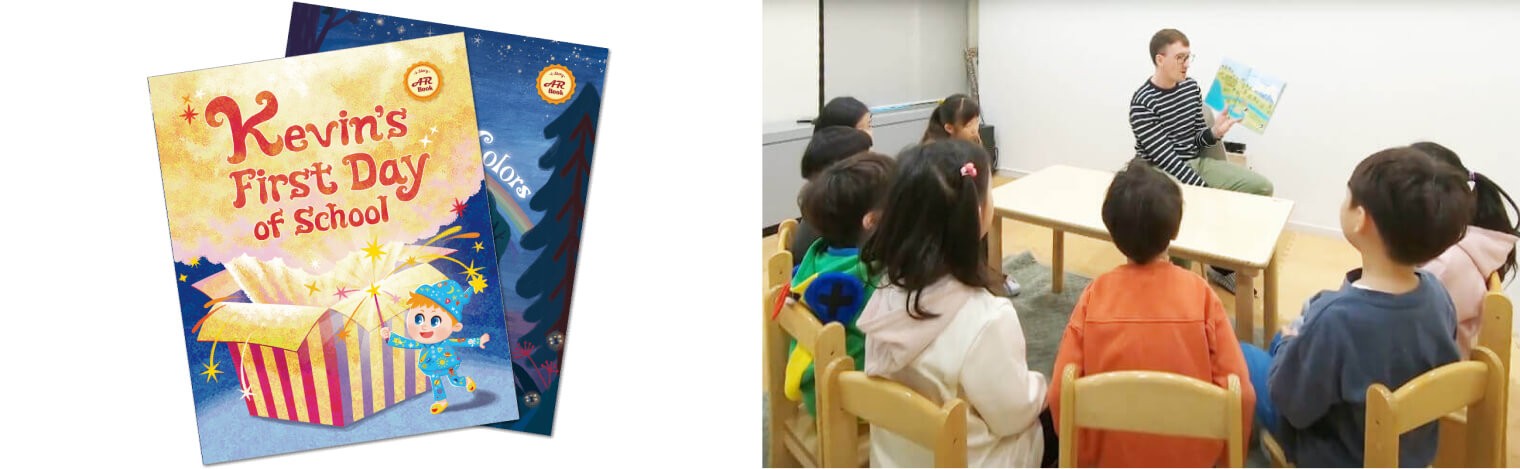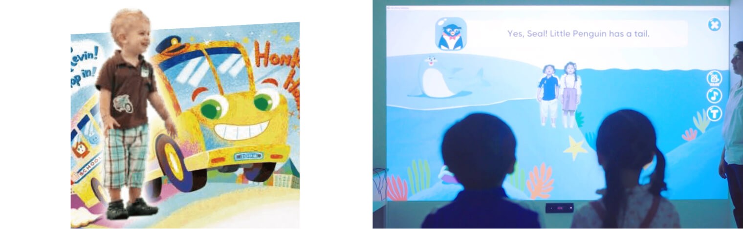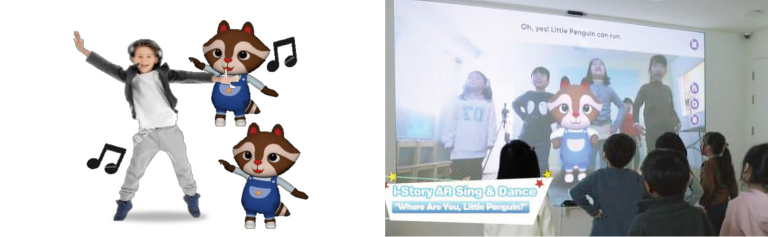 AR対応の絵本による読み聞かせののち、子ども自身がスクリーンの中で絵本の主人公となり、