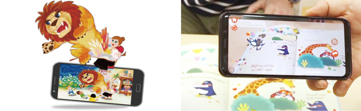 スマートフォンを使い、その絵本が立体的に飛び出しクイズ形式で理解を深めます。