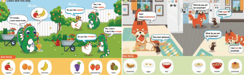 スマートボードとカメラを使用し、物語のストーリーを歌とダンスで表現します。
